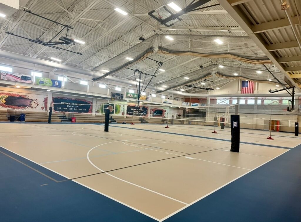 Our spacious 18,000-square-foot arena features three basketball courts, seating for up to 300, accessible restrooms and locker rooms, as well as two separate entrances.